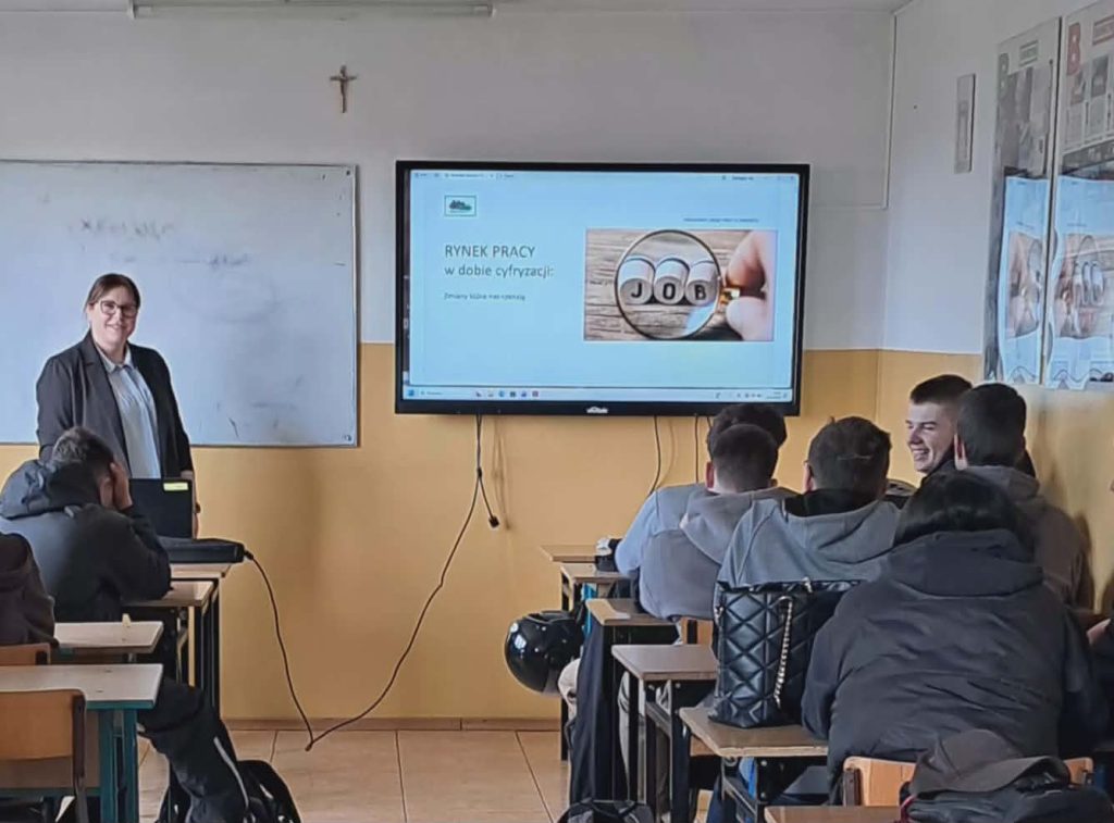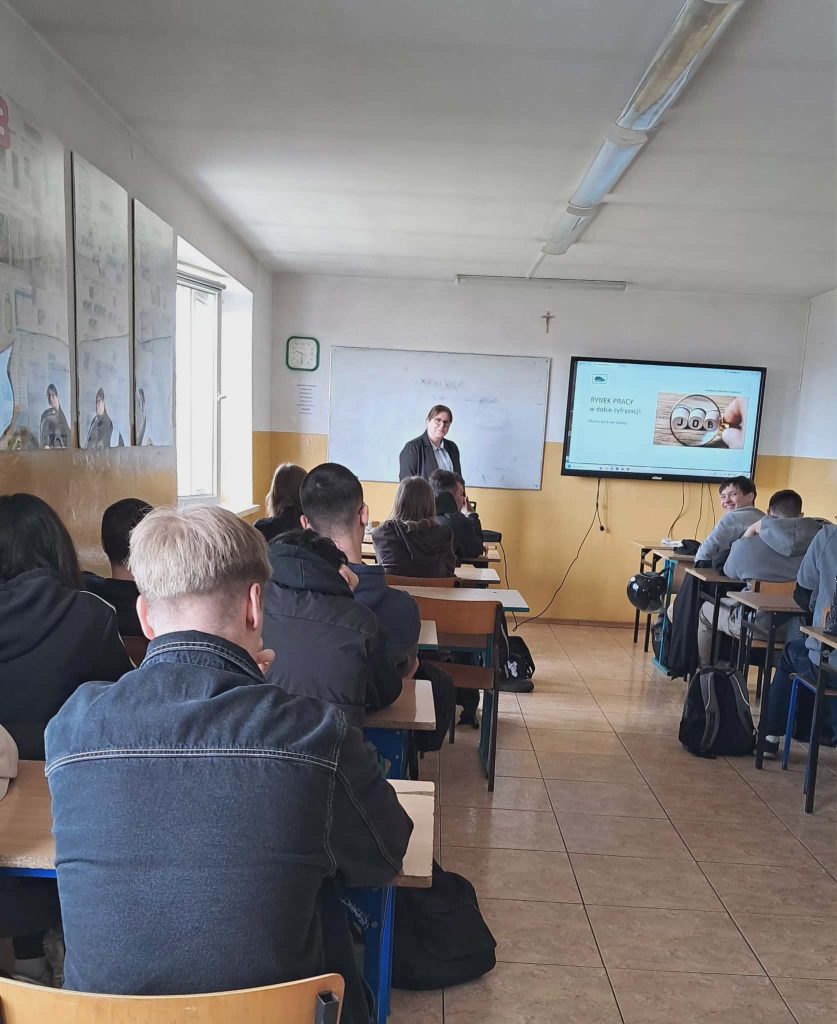 W dniu 13 kwietnia uczniowie klas trzecich spotkali się z doradcą zawodowym z Powiatowego Urzędu Pracy w Zamościu. Temat spotkania: „Rynek pracy w dobie cyfryzacji”. Podczas spotkania uzyskali informacje na temat funkcjonowania urzędu pracy oraz z jakich form wsparcia będą mogli skorzystać po ukończeniu szkoły. Znajomość rynku pracy, umiejętne funkcjonowanie na rynku jest niezbędną umiejętnością absolwenta naszej szkoły.